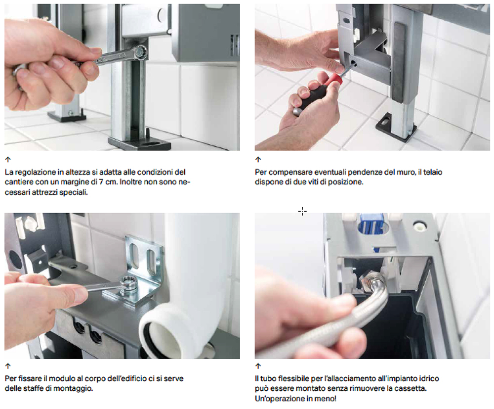 - Il montaggio avviene con le stesse modalità del modulo d’installazione Geberit Duofix